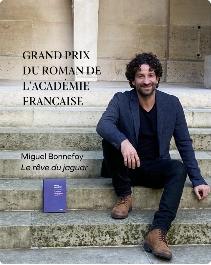 El autor franco-venezolano Miguel Bonnefoy fue galardonado este jueves 24 de octubre con el Gran Premio de Novela de la Academia Francesa por su libro Le rêve du jaguar (El sueño del jaguar).