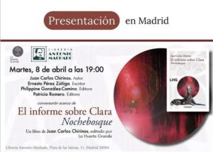 El informe sobre Clara de Juan Carlos Chirinos se presenta en la librería Antonio Machado de Madrid. abril 8