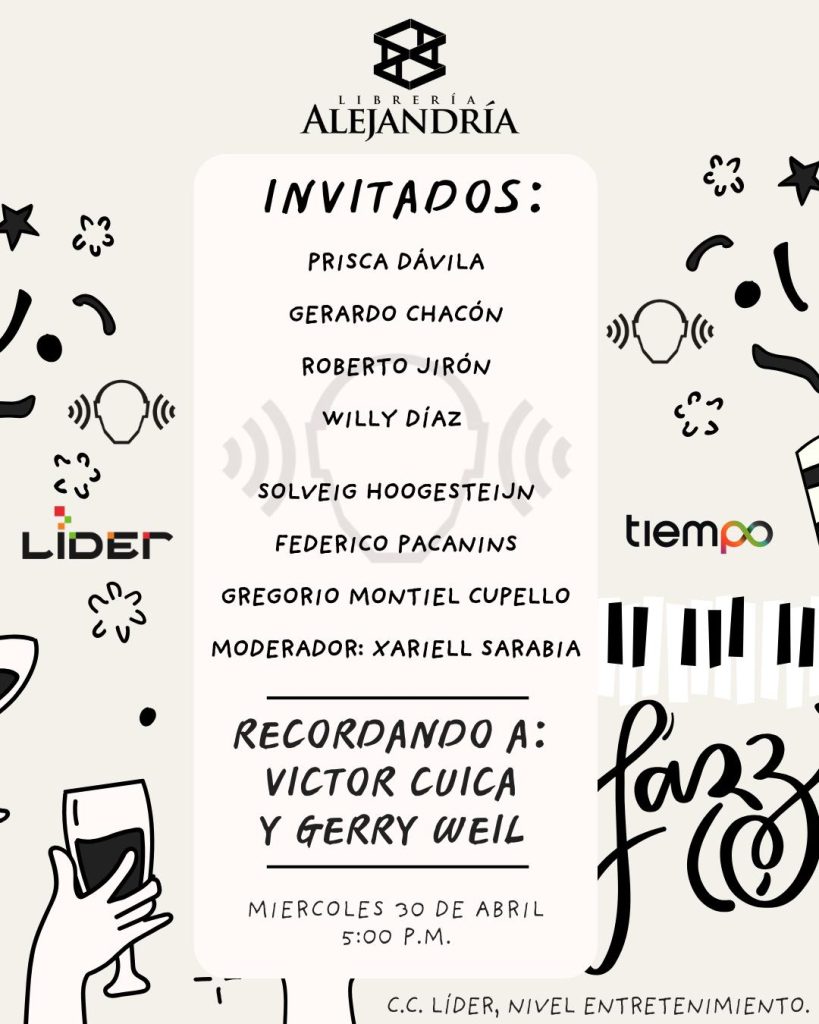 Se darán cita en sus espacios un relevante grupo de personas para conversar sobre estos dos excelentes músicos, estarán allí: Prisca Dávila, Gerardo Chacón, Roberto Jirón, Willy Díaz, Solveig Hoogesteijn, Federico Pacanins, Gregorio Montiel Cupello y Xariell Sarabia como moderador.