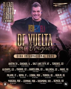 Rafael Pollo Brito más conocido como (@pollobrito) en todas sus redes sociales, celebra en grande sus raíces con todos los venezolanos esparcidos por el mundo, con la gira de conciertos De Vuelta al Origen honrará el gentilicio, las tradiciones, la cultura y el amor que representa la venezolanidad. El popular cantautor y músico se reencontrará con el público en sus presentaciones, que estarán llenas de sentimientos, hits musicales y la alegría de sentirse como en casa, y regresando a nuestro origen, para recordar lo que somos.